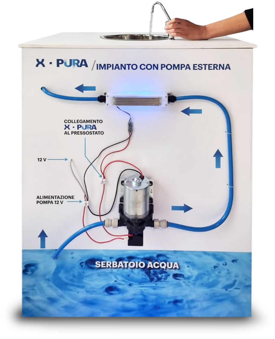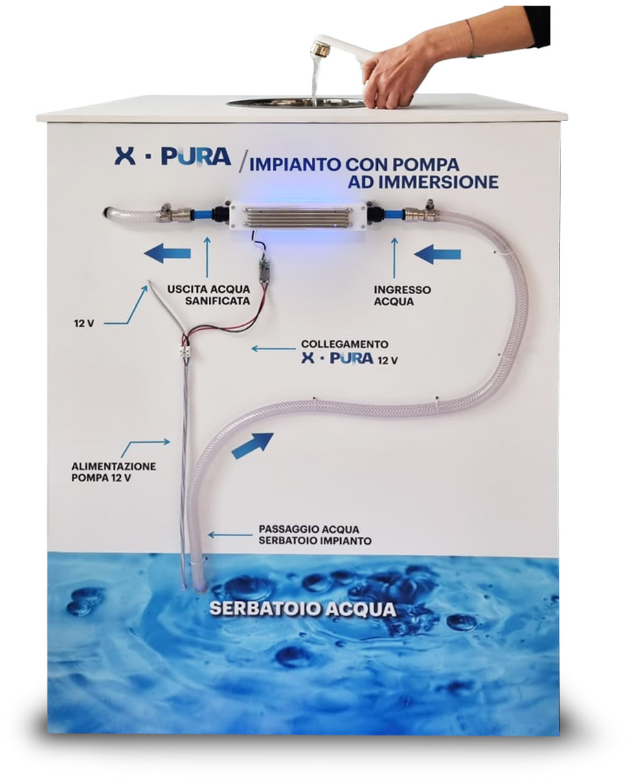 Thanks to UV-C LED technology, X-PURA sanitize water, guaranteeing microbial reduction without the use of chemicals or filters.
